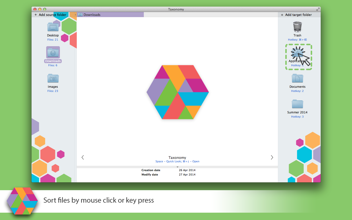 Moscow based developer, Vostok today announces Taxonomy 2, the fast and easy-to-use tool for file sorting on Mac OS X. Useful for sorting docs, photos and media, this app allows quick and easy sorting of folders and storing them in order. Taxonomy is indispensable when it is time to clean out the Downloads folder, the Desktop or arrange projects or media. This update contains number of new features like multiple files operations, undo, file renaming and more.
