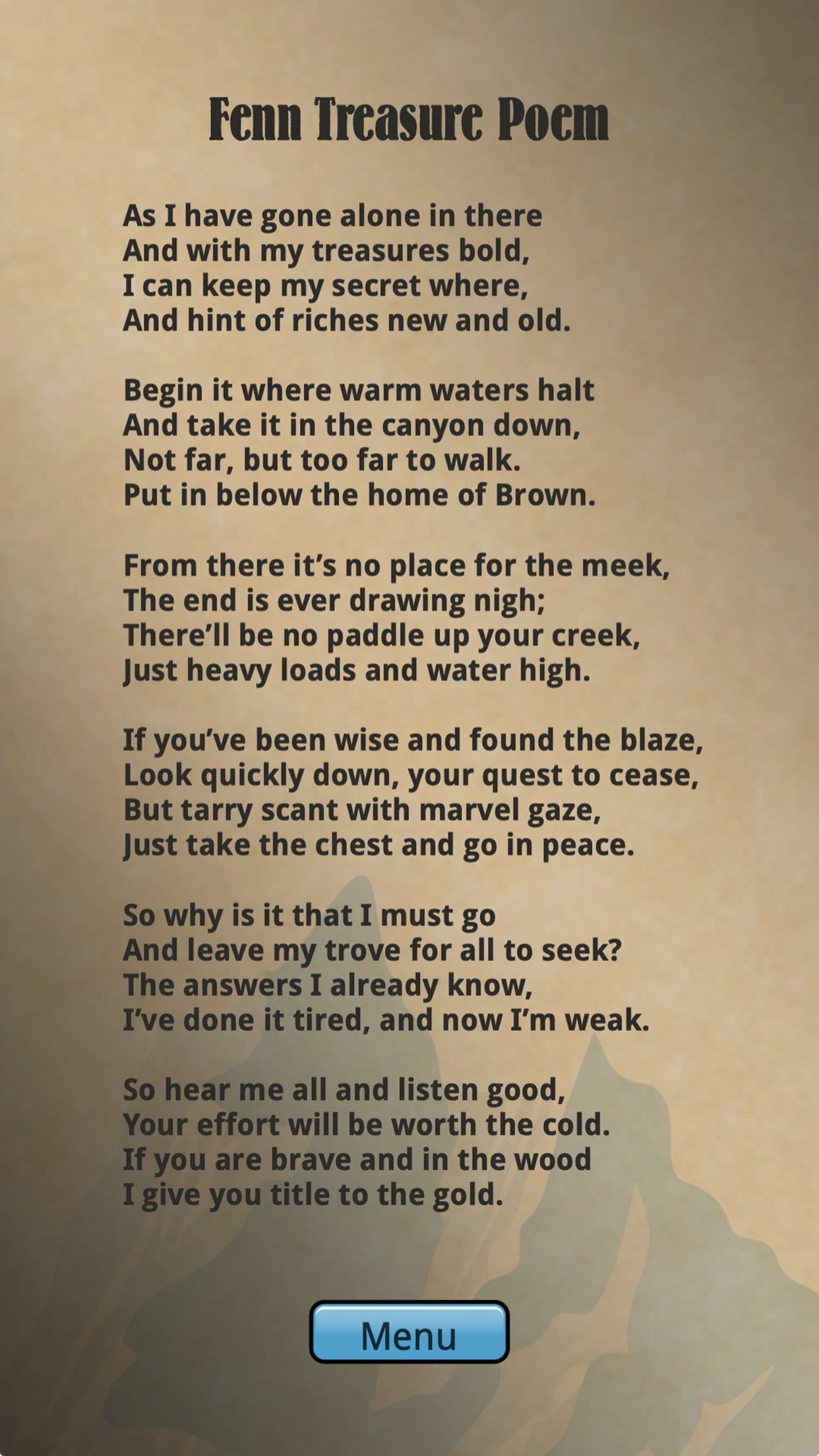Disclaimer: This app has no affiliation with Forrest Fenn. Do not search for the treasure without taking safety precaution.