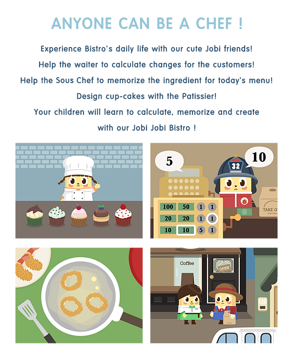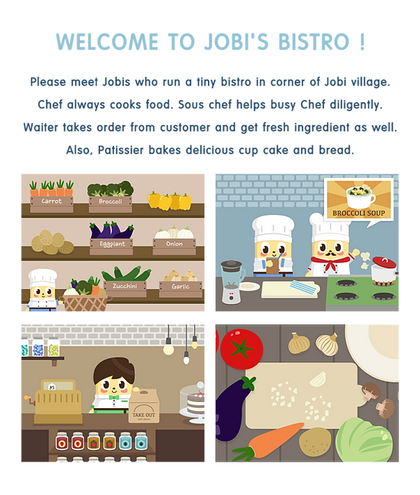 Seoul, Korea - Yellephant, the best kids media startup in South Korea, today is pleased to announce the release of Jobi's Bistro 1.0, its new kids roll-playing app developed for iOS, Android devices and Mac. The third in a series of delightful kids apps, Jobi's Bistro is a functional game to help improve children's memory, numerical ability and creativity through different games. Children can experience various roles with adorable jobi characters on the background of a restaurant in Jobi village. With cute and funny Jobis, you and your children can learn about different jobs.