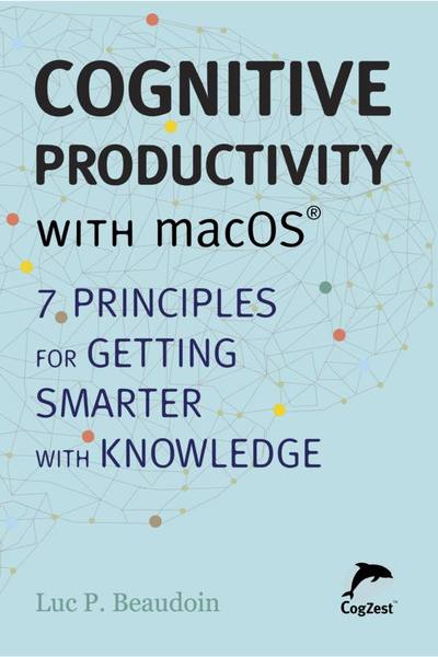 Announcing a new CogZest e-book by Luc P. Beaudoin: Cognitive Productivity with macOS 7 Principles for Getting Smarter with Knowledge. This is the Mac-focused, practical sequel to Beaudoin's ground-breaking e-book, Cognitive Productivity: Using Knowledge to Become Profoundly Effective. Cognitive Productivity books are designed to help you thrive in the sea of knowledge. Luc Beaudoin is a cognitive scientist, author and entrepreneur who specializes in cognitive productivity and well-being.